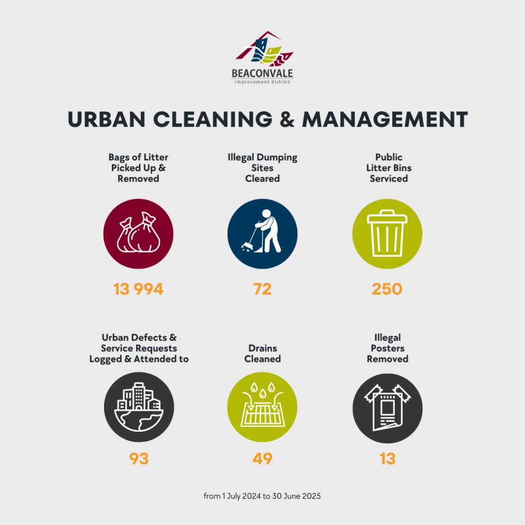 Across Beaconvale, our cleaning and maintenance teams have worked throughout the year to keep streets, verges and public spaces clean and well managed. Activities such as removing litter, clearing illegal dumping, attending to urban defects, servicing public bins and keeping stormwater infrastructure clear have all contributed to creating a more inviting environment for workers, visitors and businesses.