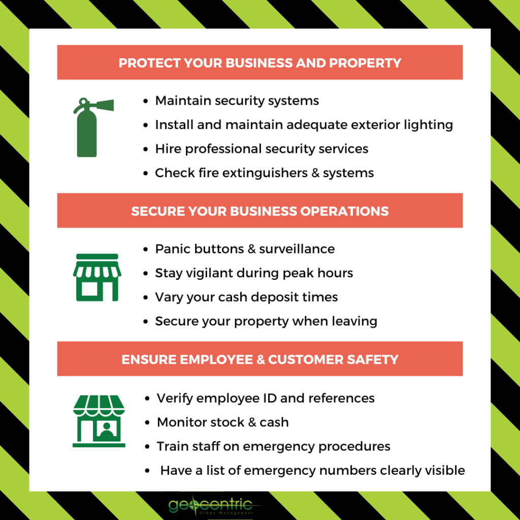 As the holidays approach, it is important for businesses to remain vigilant. The festive season typically brings increased foot traffic, higher crime risks and a heightened chance of fire incidents. The following tips can help safeguard your property, staff and operations.